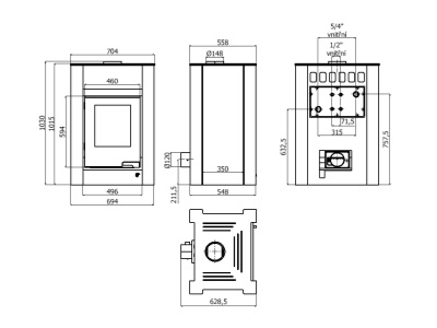 Krbová kamna jsou standardně dodávána s teplovodním výměníkem. Zákazník má možnost výběru mezi dvěma výkony: 3 - 9kW a 5 - 11kW teplovodního výkonu.